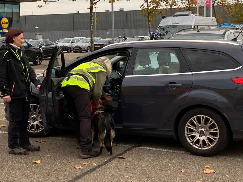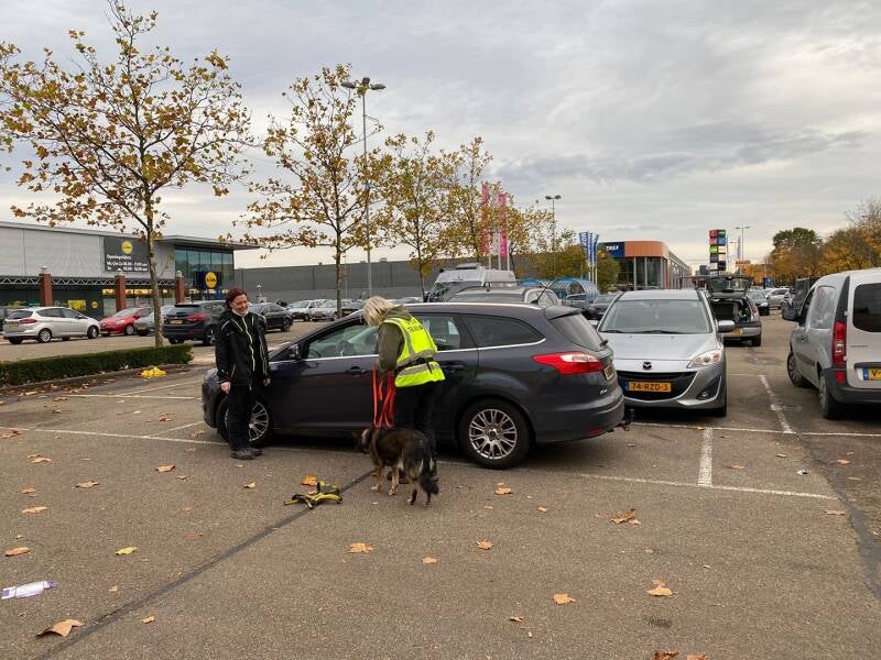 Een inbreker heeft een munt gebruikt in het winkelwagentje, de inbreker stapt na een vlucht in een auto, het spoor stopt. NSI ( no scent information)